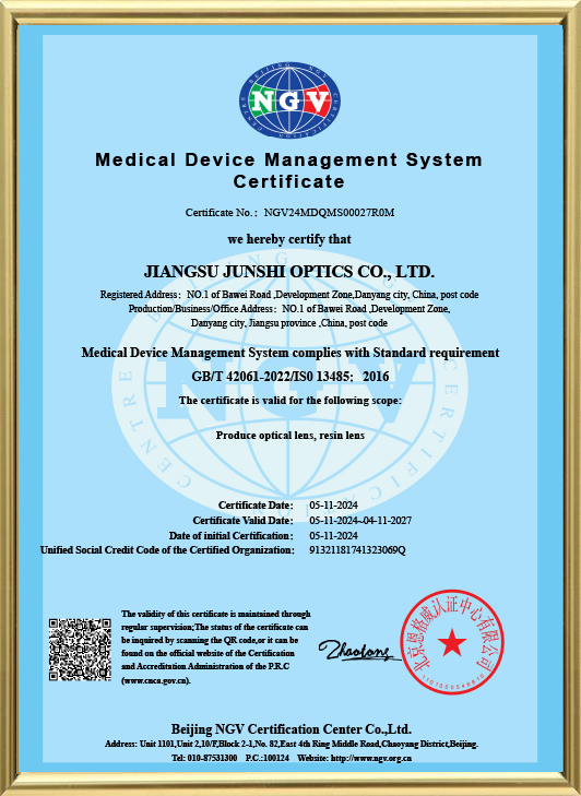 أطلقت شركة جونشي عدسات عالية الدقة مقاس 1.60 بوصة، مضادة للضوء الأزرق، ومقاومة للخدش.